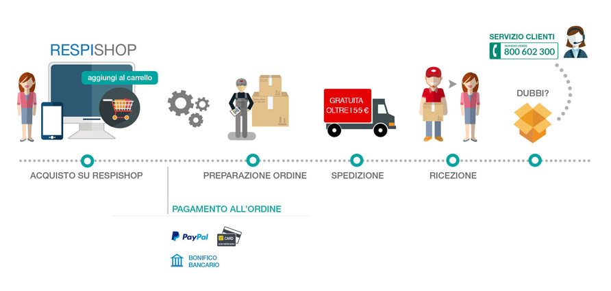 Potrai richiedere qualsiasi informazione tramite i nostri servizi di assistenza: contattaci via email all’indirizzo info@respishop.com o tramite il numero verde 800 602 300