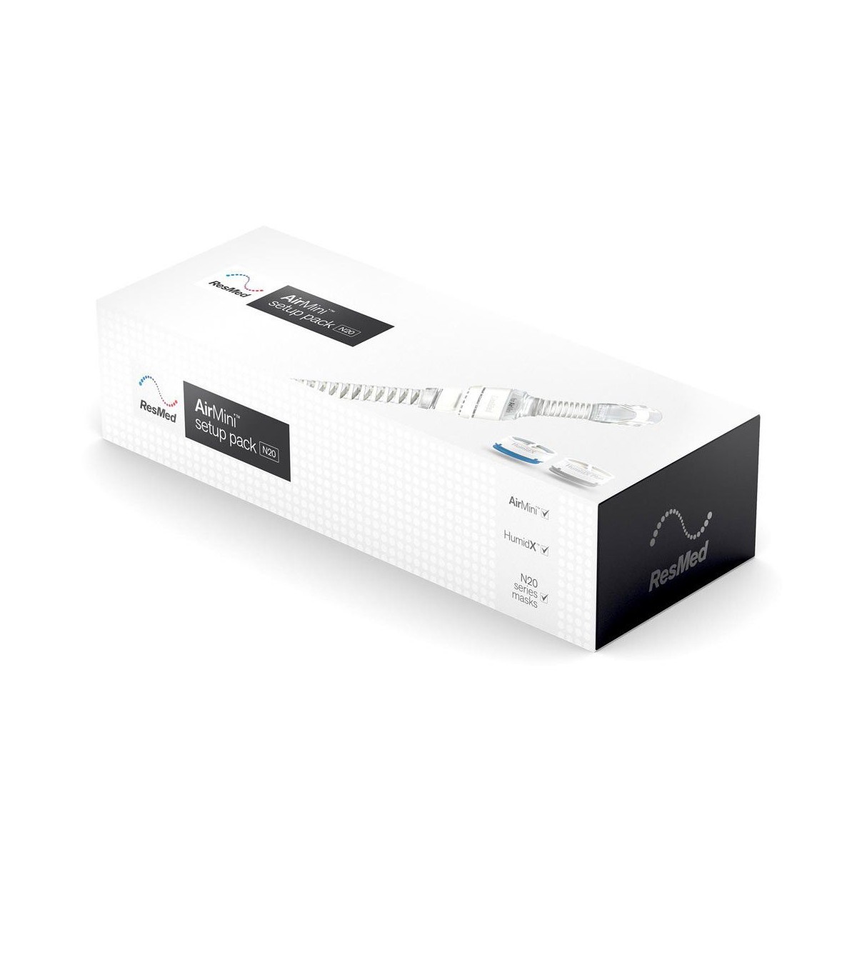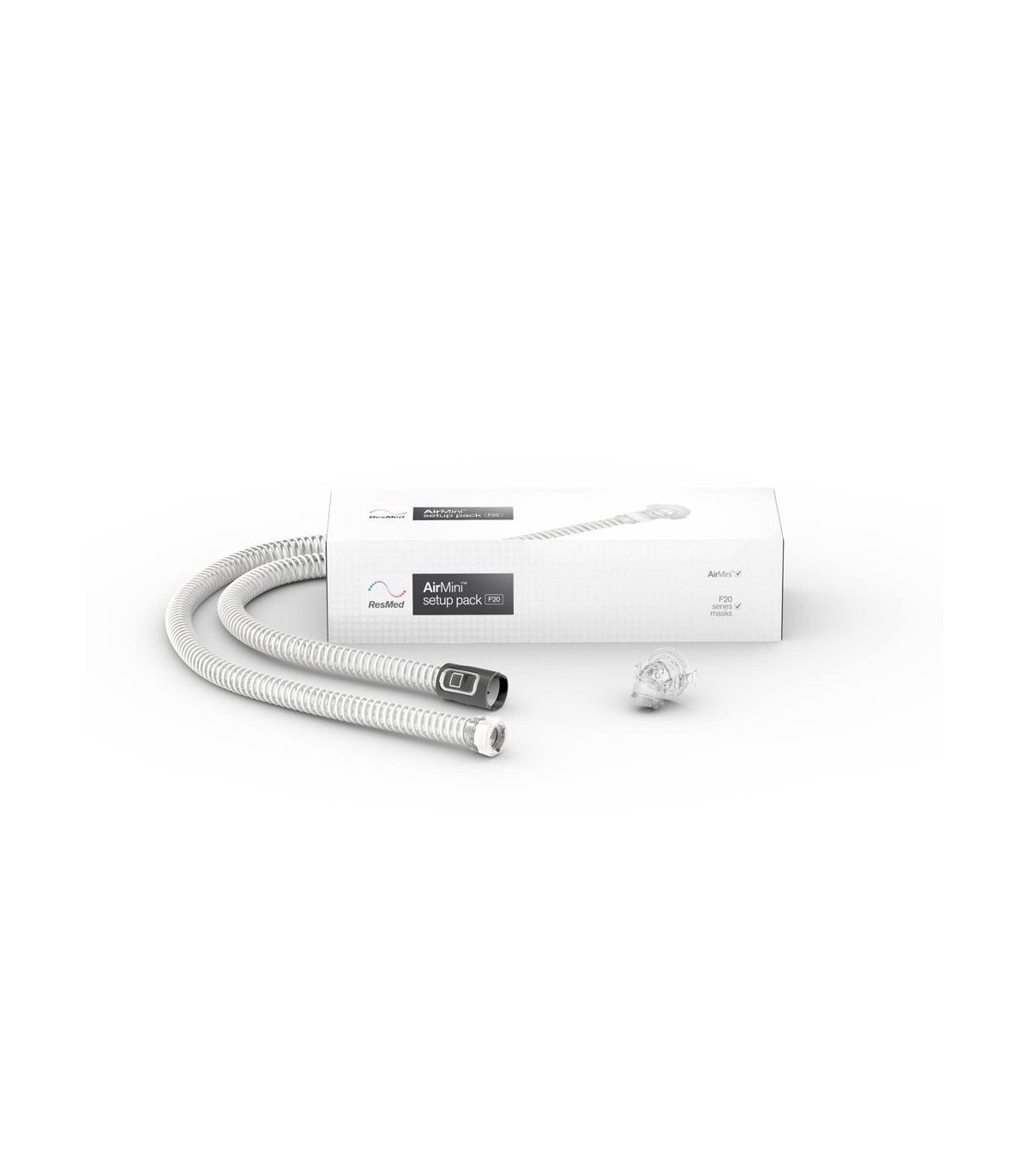 Il kit adattatore contiene un adattatore per le maschere facciali (acquistabili a parte) AirFit F20 e AirTouch F20 con tutti gli accessori necessari per il collegamento con il dispositivo Auto CPAP AirMini AutoSet di ResMed.
