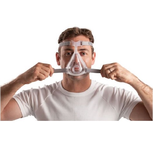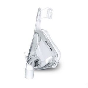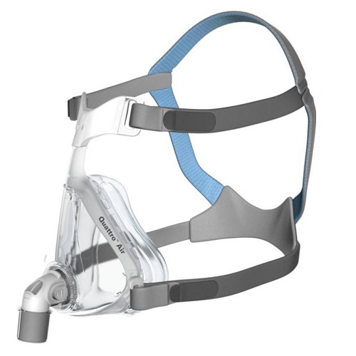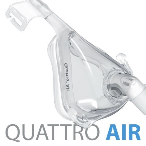La maschera Mirage Quattro Air è una maschera facciale (oro-nasale) per ventiloterapia con fori per l’esalazione della CO2 incorporati (non necessita perciò di valvole espiratorie aggiuntive).