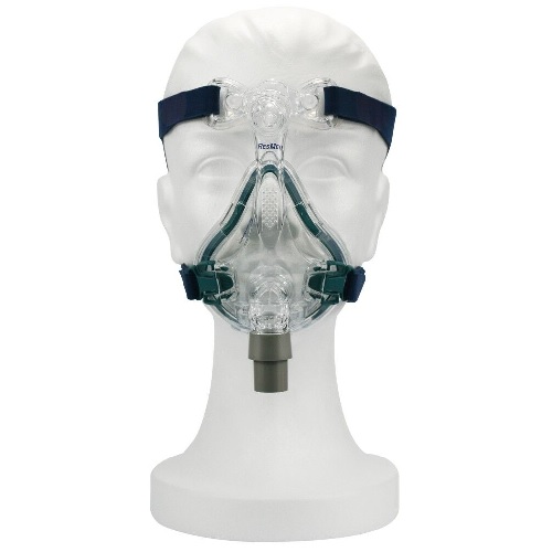 Sul telaio sono presenti anche i fori per l’esalazione della CO2 sulla parte superiore ed un gomito girevole dove è presente una valvola anti-asfissia, che assicura che il paziente respiri anche in caso di interruzione del flusso d’aria dal ventilatore. La maschera viene fornita assemblata e pronta all’uso.