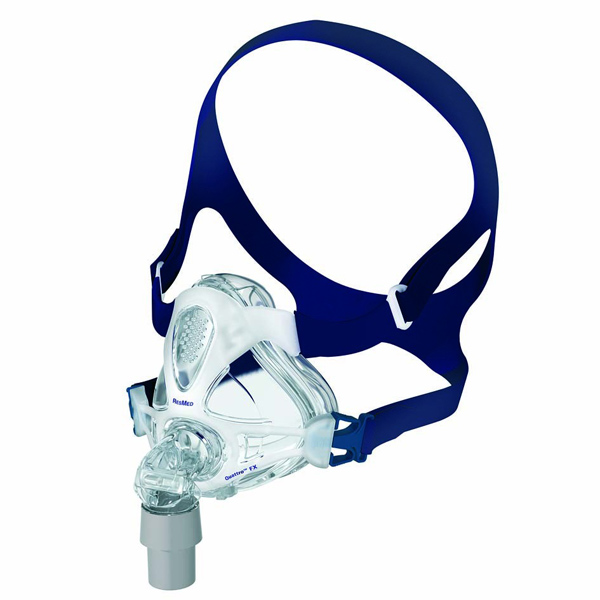 La maschera MirageTM Quattro FX è una maschera facciale (oro-nasale) per ventiloterapia con fori per l’esalazione della CO2 incorporati (non necessita perciò di valvole espiratorie aggiuntive).